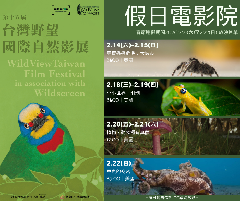 【假日電影院】 ⬇ 影片節目表 ⬇ 2/14(四)-15(五) |實蟲蟲危機:大城市 (31分鐘) 2/18(六)-19(日) |小小世界:珊瑚 (31分…