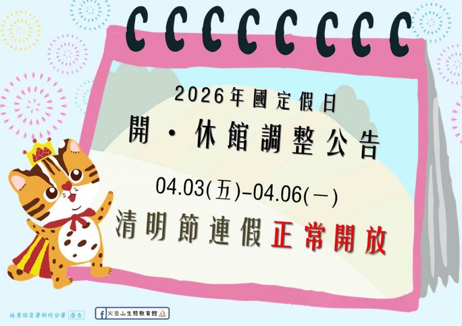 火炎山生態教育館在清明連假四天 《正常開館》 隨著春風徐徐吹拂 萬物都在迎接這個生機盎然的時節 趁著假期回鄉探訪 不妨來訪火炎山生態教育館 與三貓陛下一起了解火炎…
