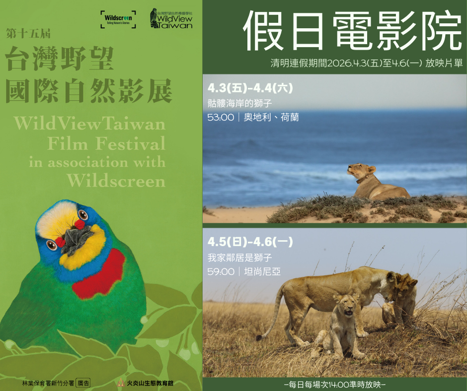 【假日電影院】 ⬇ 影片節目表 ⬇ 4/3(五)-4/4(六) |骷髏海岸的獅子 (53分鐘) 4/5(日)-4/6(一) |我家鄰居是獅子 (59分鐘)…